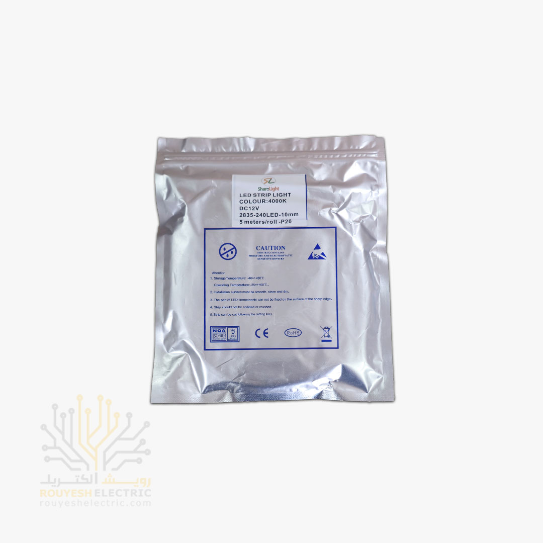 ریسه نواری لاینر 12 ولت برند شارو لایت تراکم 240 برش 1.25 سانت عرض 8 میل پشت چسب دار نچرال حلقه 5 متری