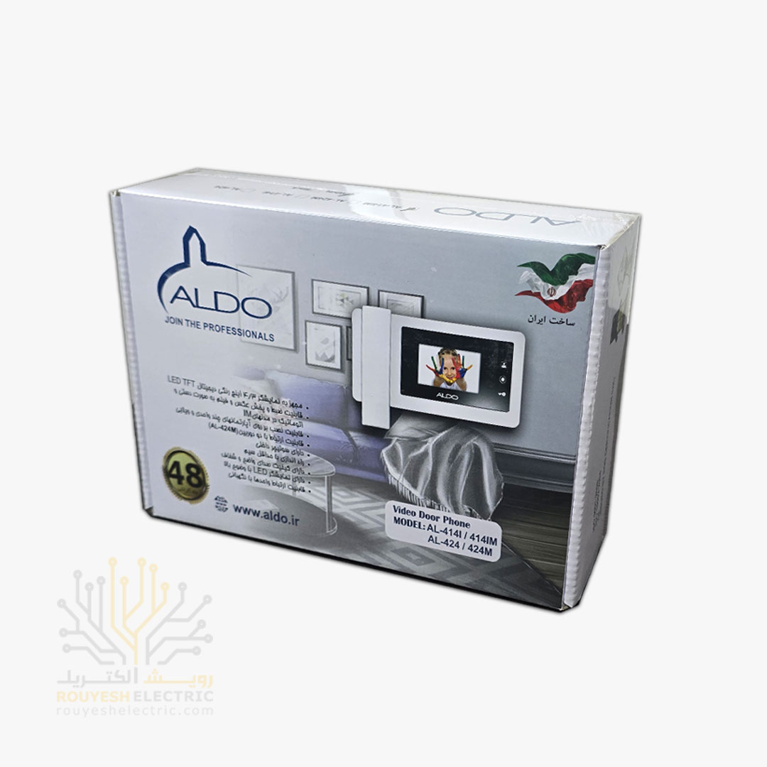 مانیتور 4.3 اینچ برند الدو مدل 414m با حافظه سفید موجود در شرکت ما تولید کشور ایران می باشد. از مزایای این محصول می شود به تنوع قابلیت های مختلف در پنل ها، مانیتور با سایز نمایشگر 4 اینچی، قابلیت ثبت تصویر و ضبط فیلم چند ثانیه ای از شخص زنگ زننده و همچنین ضمانت تعویض یکساله آن اشاره کرد؛ ضمنا 2 سال ضمانت تعویض برد معیوب (جمعا 3 سال ضمانت) از دیگر مزایای این مدل پنل آیفون تصویری می باشد.