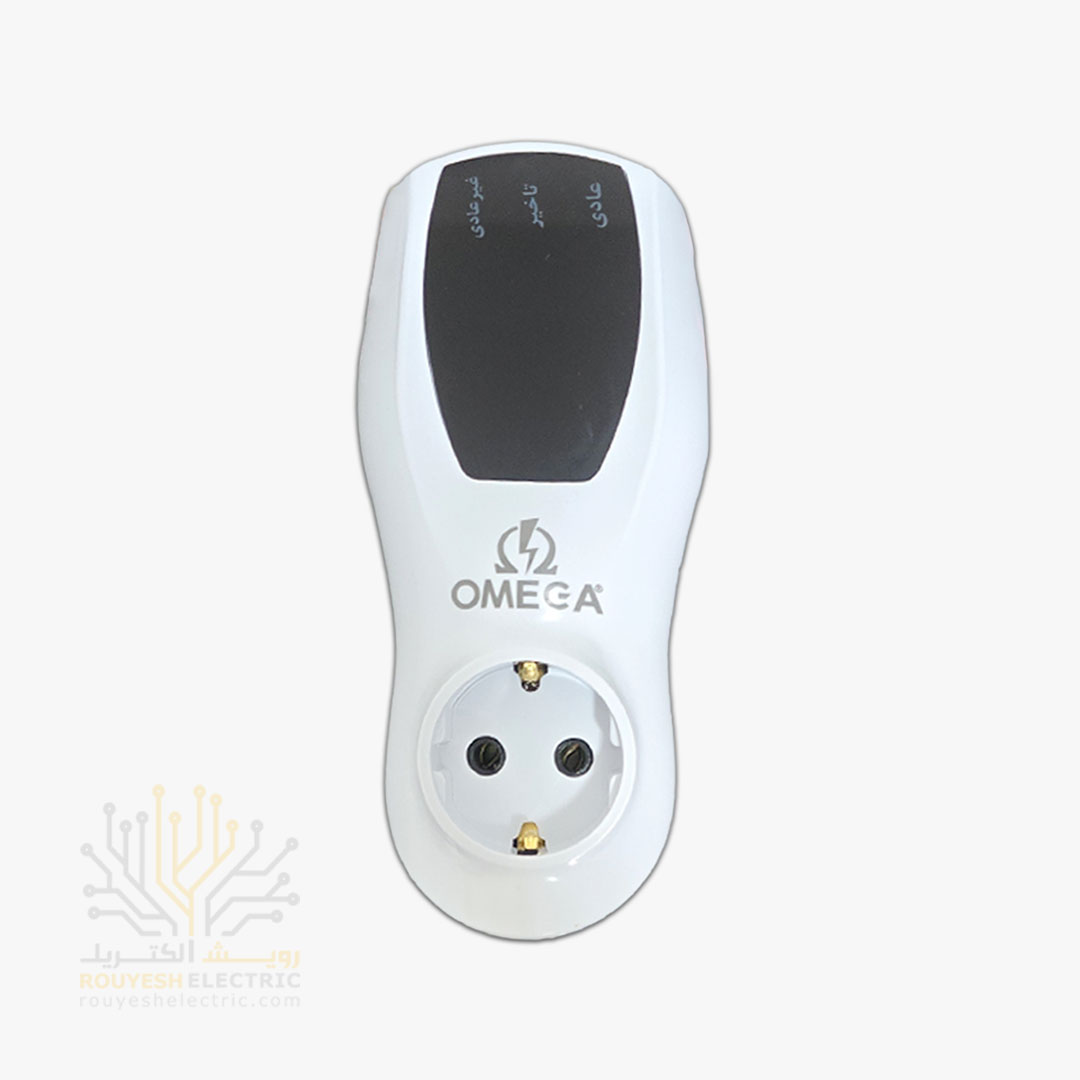 محافظ برق کولری دیواری تک خانه برند امگا مدل p1000 استاندارد ارتدار بدون کلید بدنه سفید آنالوگ