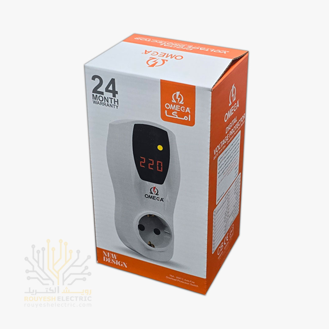 محافظ برق کولری و لباسشویی و ظرفشویی دیواری تک خانه برند امگا مدل G1000 استاندارد ارتدار بدون کلید رنگ سفید دیجیتال