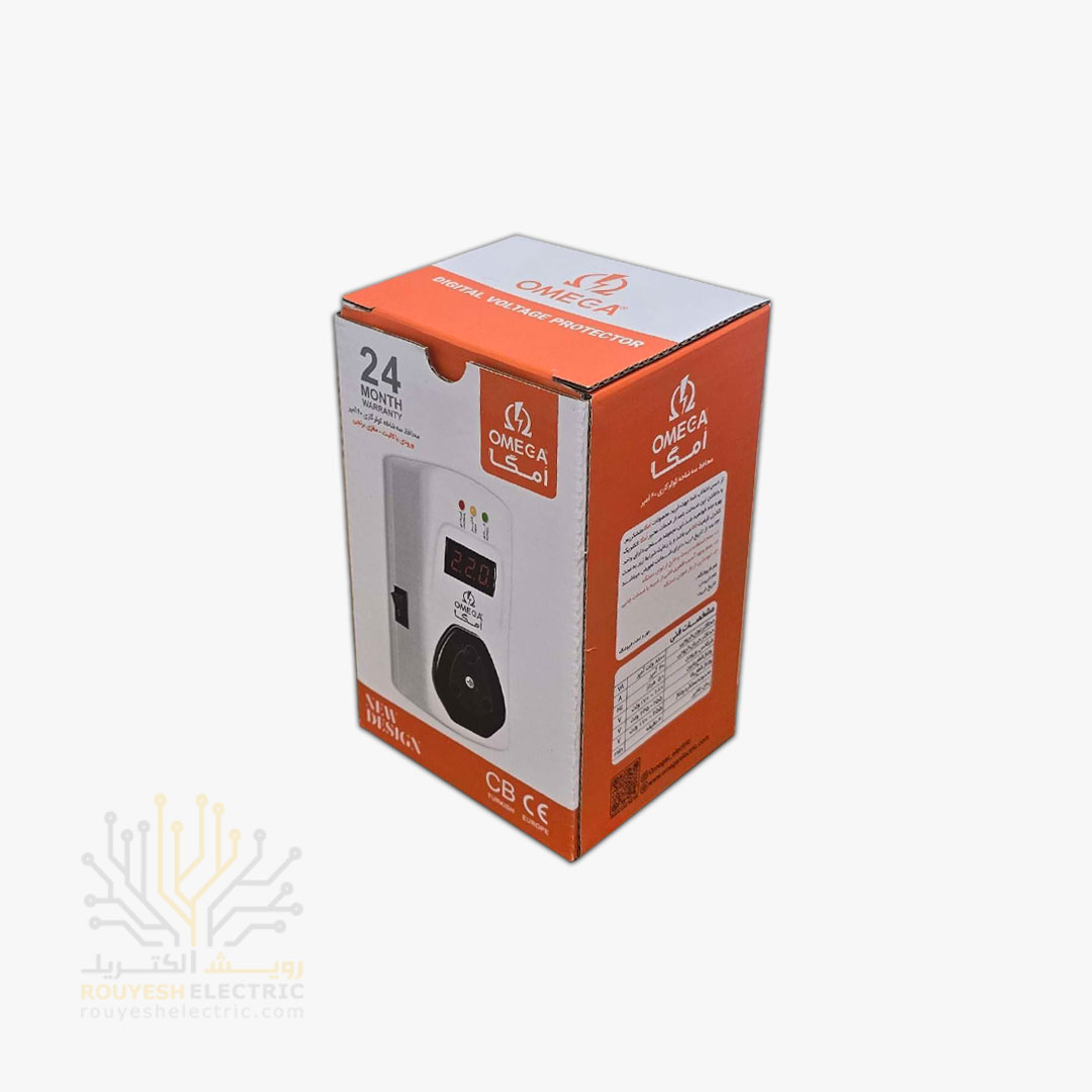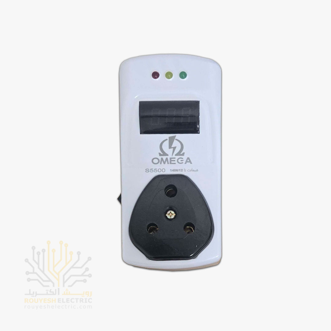 محافظ برق کولری دیواری سه شاخه برند امگا مدل S55000 MK استاندارد بدون ارت بدون کلید 40 آمپر دیجیتال