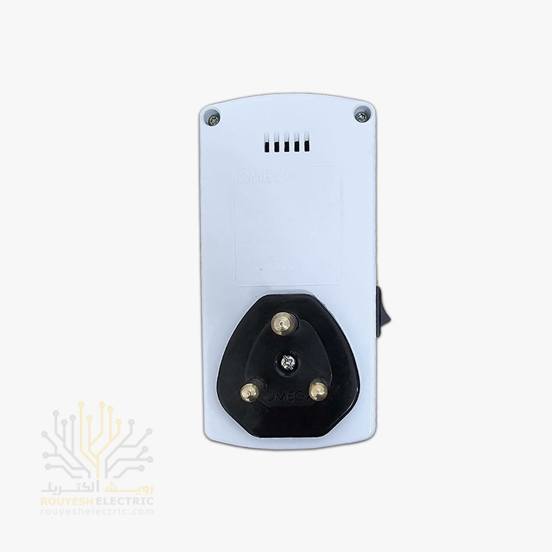 محافظ برق کولری و لباسشویی و ظرفشویی دیواری تک خانه برند امگا مدل G1000 استاندارد ارتدار بدون کلید رنگ سفید دیجیتال