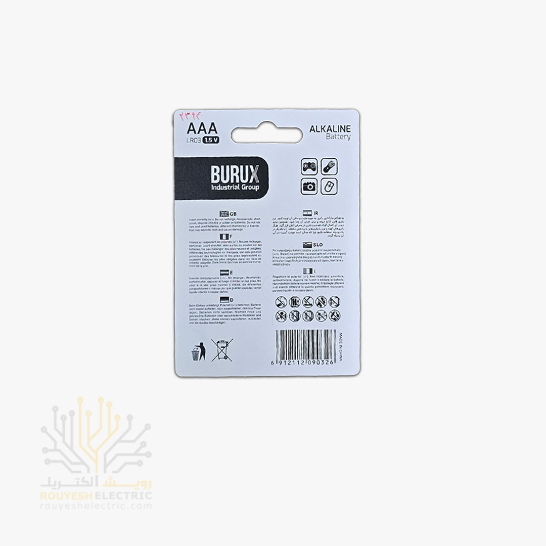 باطری نیم قلمی سوپر آلکالاین برند بروکس کارتی 4 عددی