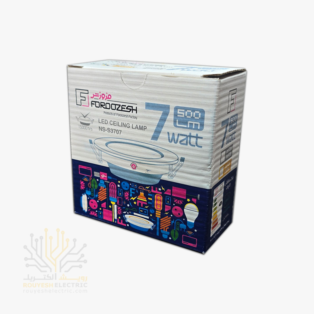 پنل سقفی توکار 7 وات برند فروزش مدل بک لایت بدون درایور دایره بدنه فلزی استاندارد مهتابی