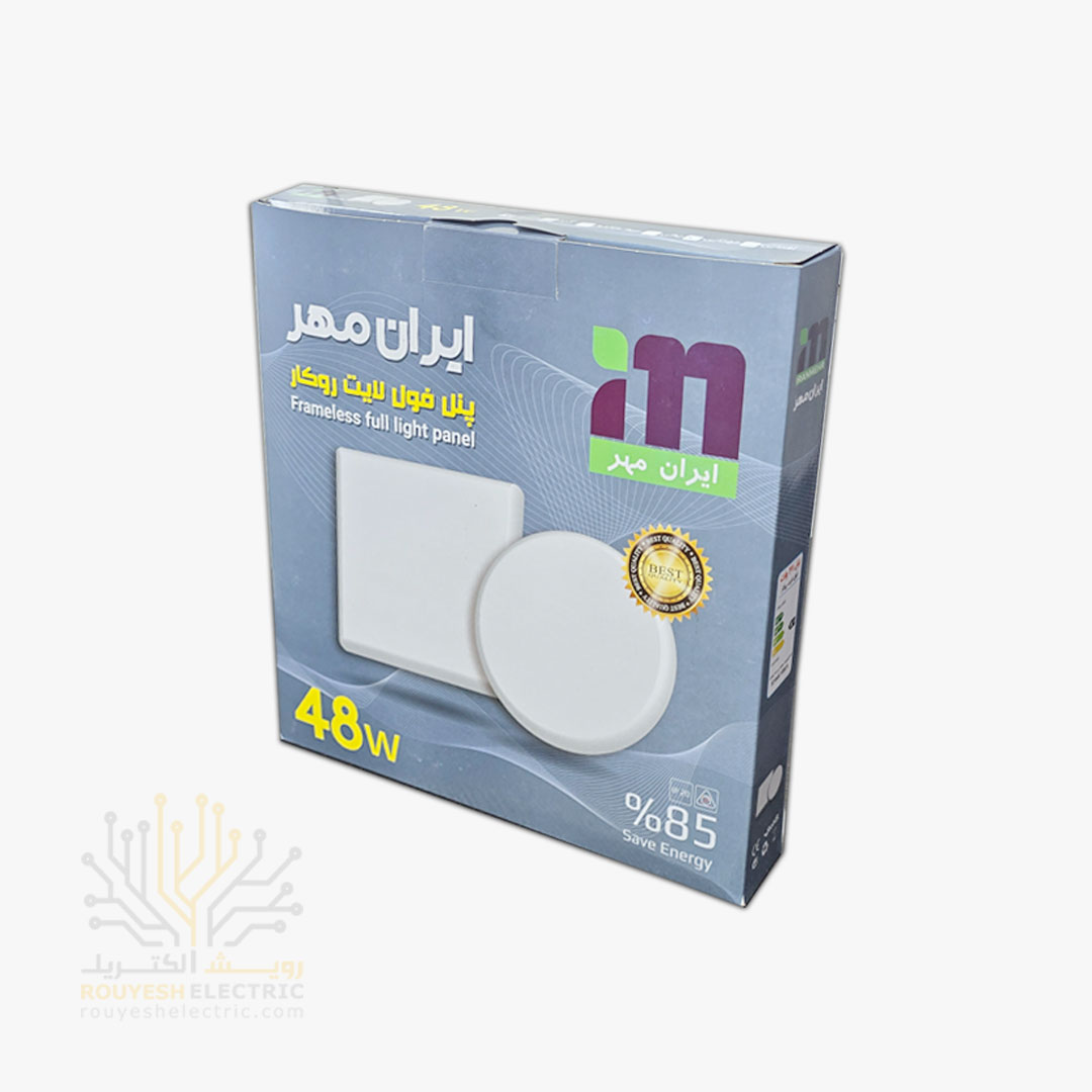 پنل سقفی روکار 48 وات برند ایران مهر مدل فول لایت مربع مهتابی، یک نوع منبع نور الکتریکی است که برای نصب بر روی سقف‌های کلاسیک و یا فضای داخلی ساختمان‌ها طراحی شده است. این پنل‌ها به عنوان جایگزین لامپ‌های سنتی و روشنایی‌های قدیمی، نور یکنواخت و با رنگ طبیعت‌مانند (مهتابی) فراهم می‌کنند و به دلیل طراحی زیبا و نصب آسان، در فضاهایی مانند ادارات، منازل، فروشگاه‌ها و رستوران‌ها کاربرد فراوان دارند.