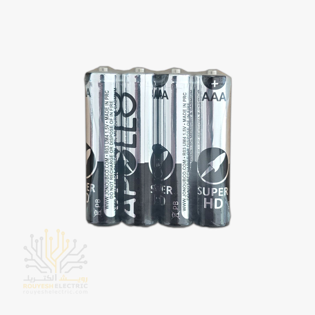 باطری نیم قلمی معمولی برند آپولو شیرینگ 4 تایی