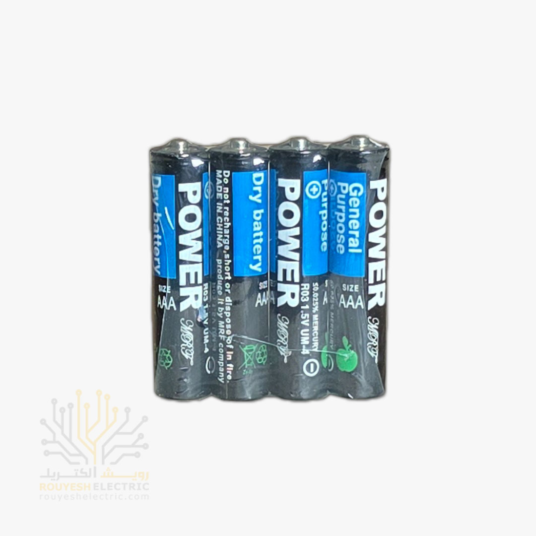 باطری نیم قلمی معمولی برند پاور شیرینگ 4 تایی