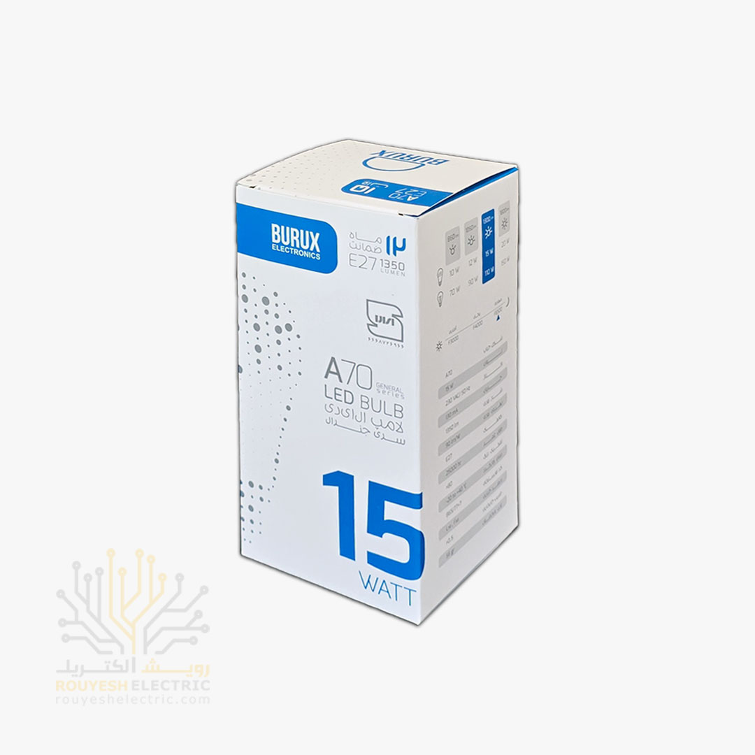 لامپ ال ای دی 15 وات حبابی برند بروکس مهتابی