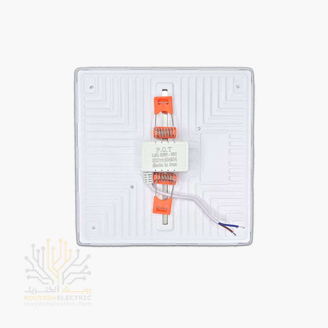پنل سقفی توکار 22 وات برند پی جی تی PGT مدل فول لایت فنر متغیر مربع استاندارد مهتابی