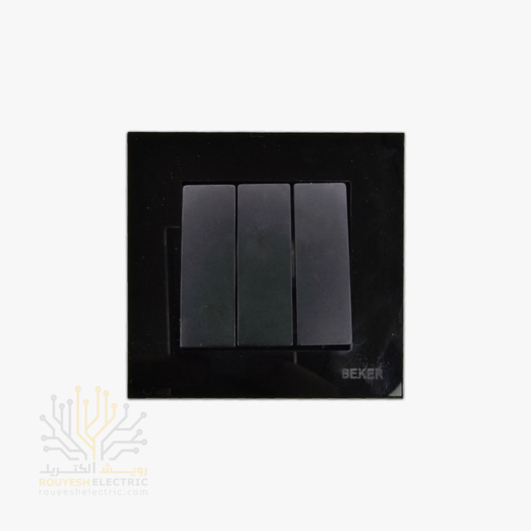 کلید سه پل توکار برند بکر مدل گلس مشکی