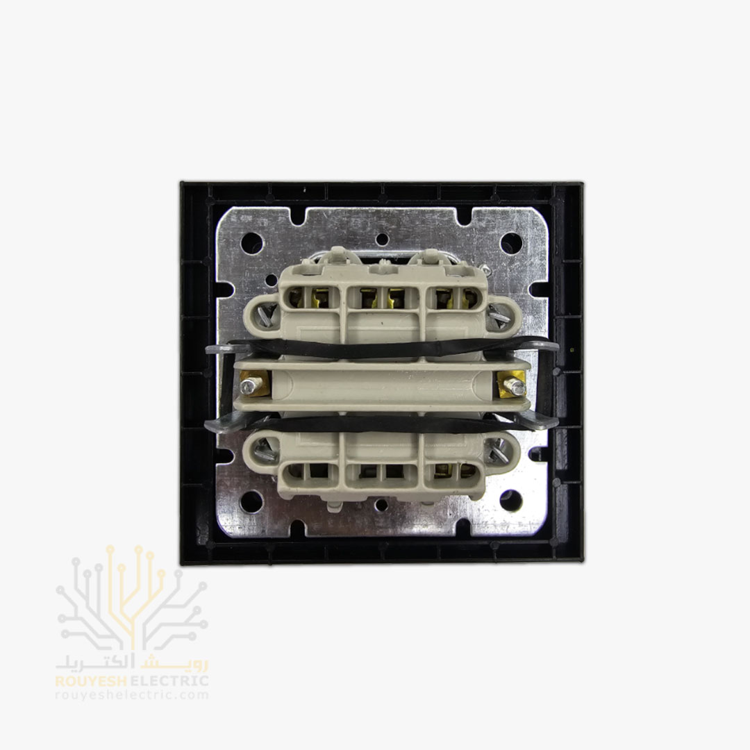 کلید سه پل توکار بکر مدل گلس مشکی شامل اجزای زیر است: