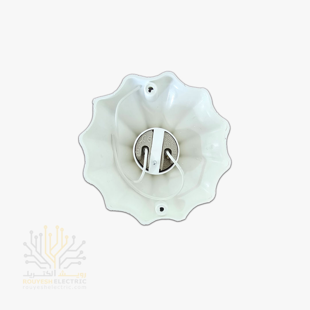 سرپیچ سقفی «گل» از برند نورسان یک اتصال‌دهنده لامپ است که علاوه بر عملکرد اصلی، کمی جنبه تزئینی نیز دارد. این مدل با رنگ سفید و طرحی که یادآور گل است، ظاهری ملایم و کلاسیک به سقف می‌بخشد. سادگی رنگ آن باعث می‌شود که برخلاف مدل‌های خیلی شلوغ، به‌راحتی با فضاهای مختلف سازگار شود و کمی از حالت صرفاً فنی خارج شده و به بخشی از دکور تبدیل گردد.