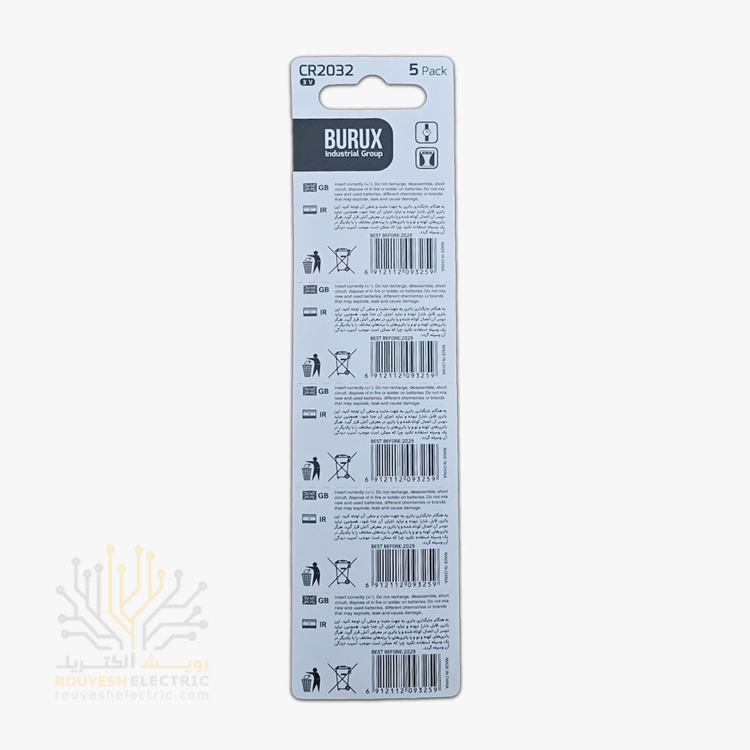 باطری سکه ای 2032 برند بروکس کارت 5 عددی