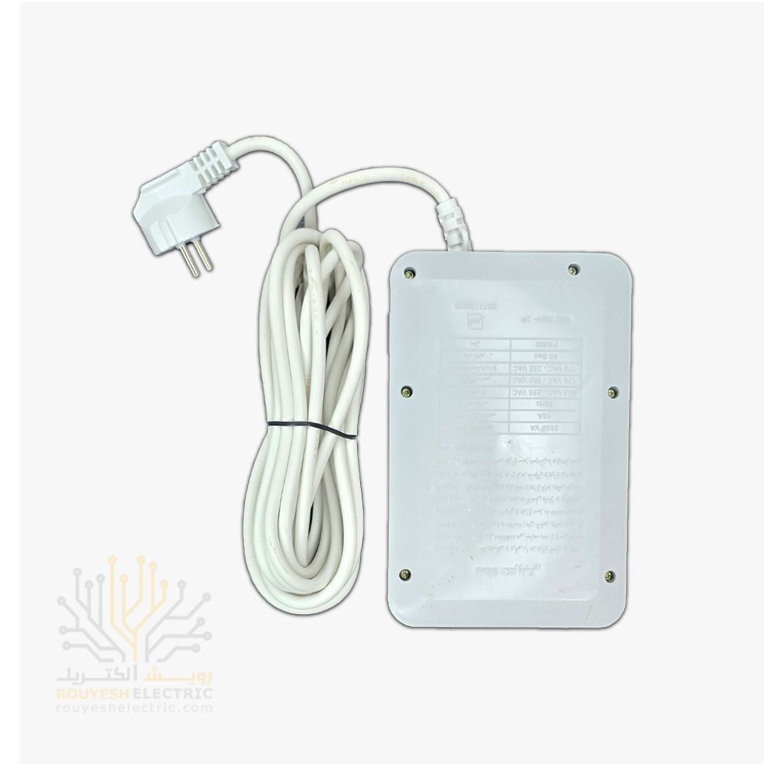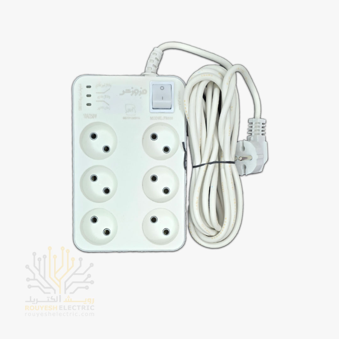 محافظ برق کامپیوتر سیار شش خانه برند فروزش مدل FR600 استاندارد بدون ارت کلید دار بدنه سفید آنالوگ 4/8 متری