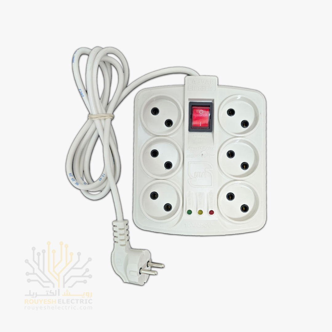محافظ برق کامپیوتر سیار شش خانه برند فروزش مدل LT600 لوتوس بدون ارت بدون کلید بدنه سفید آنالوگ 1/8 متری