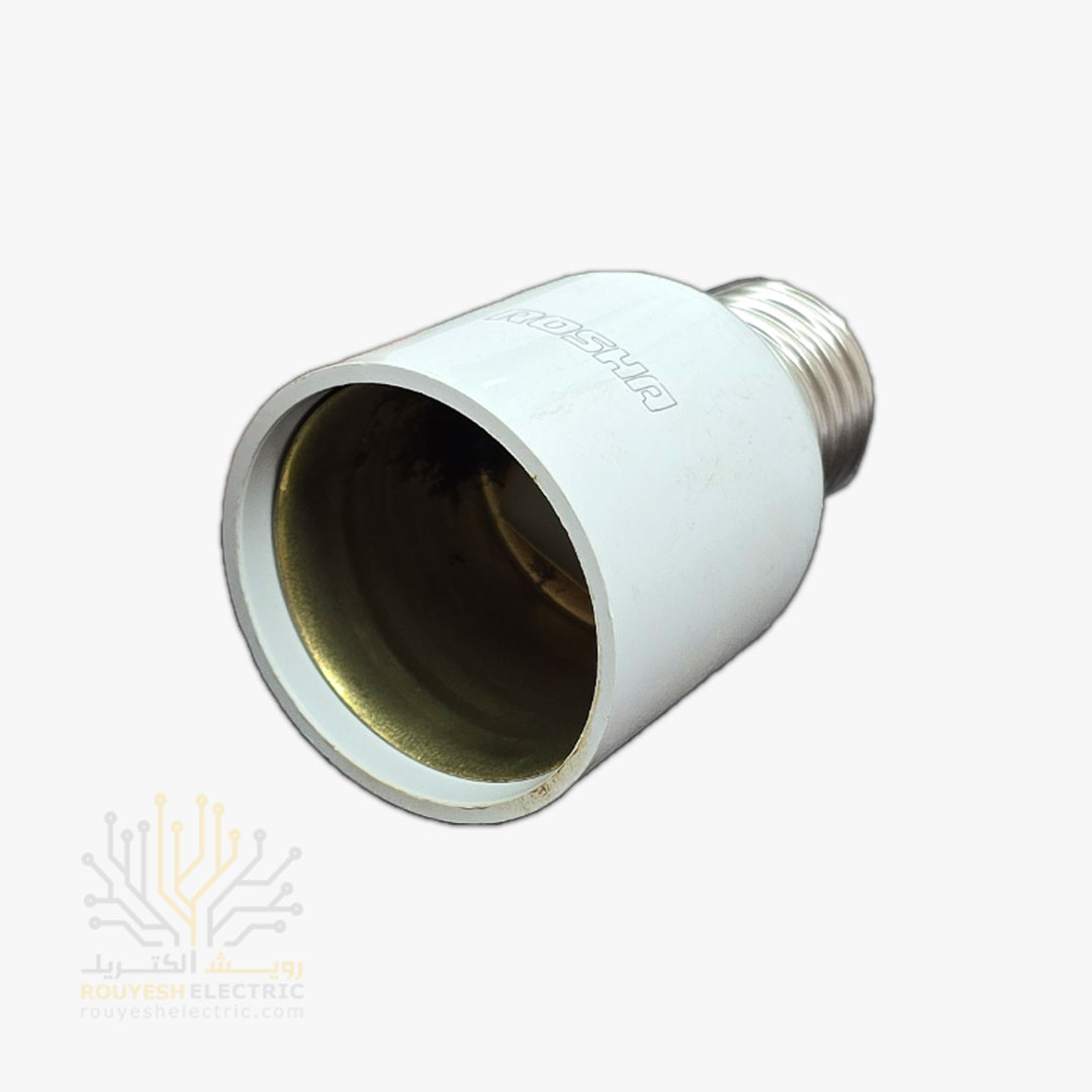 این وسیله یک آداپتور تبدیل سایز است که توسط برند «روشا» ساخته شده و ظاهرش به خاطر شکل بزرگتر سرپیچ مقصد، کمی شیپوری یا قیفی است. وظیفهاش این است که دهانه کوچکتر سرپیچ معمولی (E27) را بزرگ کند تا بتواند لامپهای قویتر و بزرگتر E40 را نگه دارد. این تبدیل به شما اجازه میدهد لامپهای قدرتمندتر را روی پایه قدیمیتر نصب کنید.