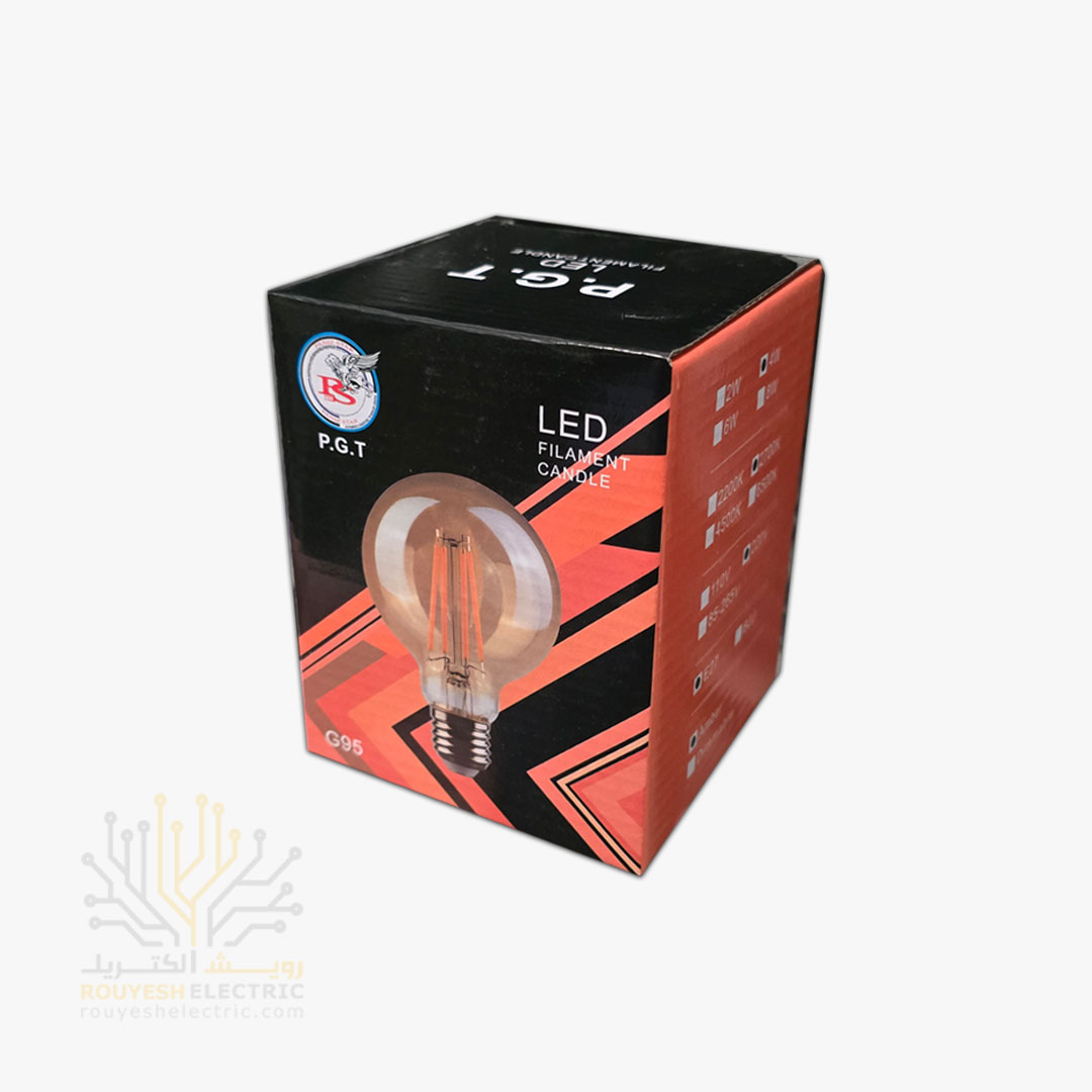 لامپ 4 وات فیلامنتی برند پی جی تی PGT مدل G95 آفتابی