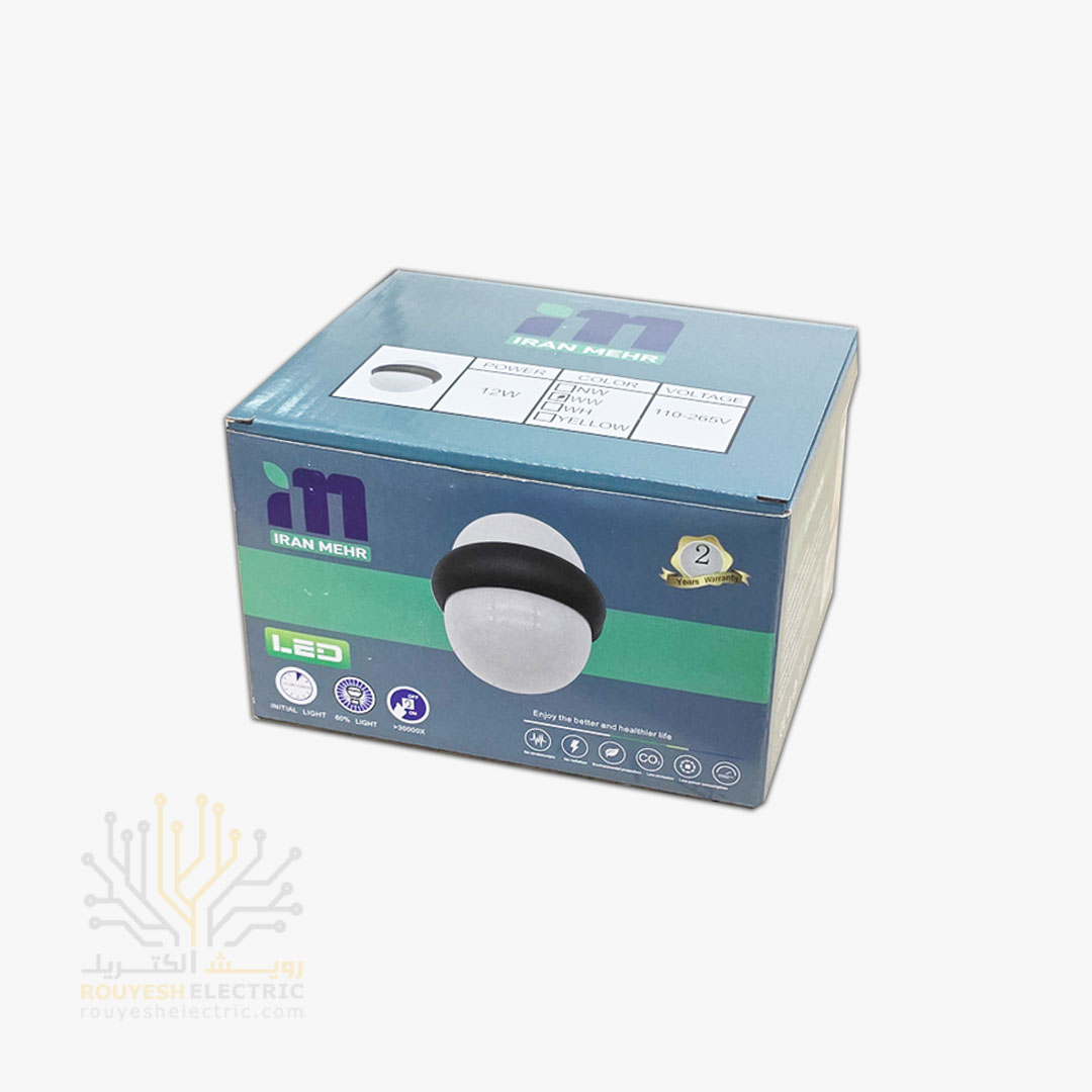 چراغ دیواری دکوراتیو 12 وات برند ایران مهر کد ایران 75 بدنه مشکی نور نچرال 6 ماه گارانتی