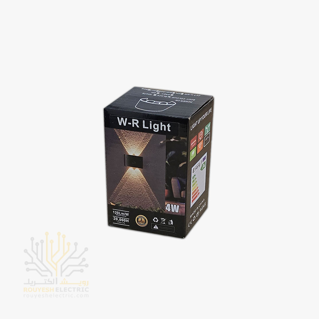 چراغ دیواری دکوراتیو برند دبلیو آر لایت مدل قطاری 4 وات چیپ کری بدنه آلومینیوم مشکی نور آفتابی