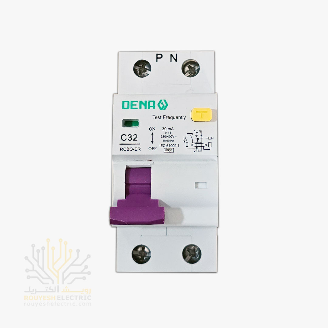 کلید محافظ جان دوپل برند دنا تکفاز مدل RCBO الکترونیک 32 آمپر