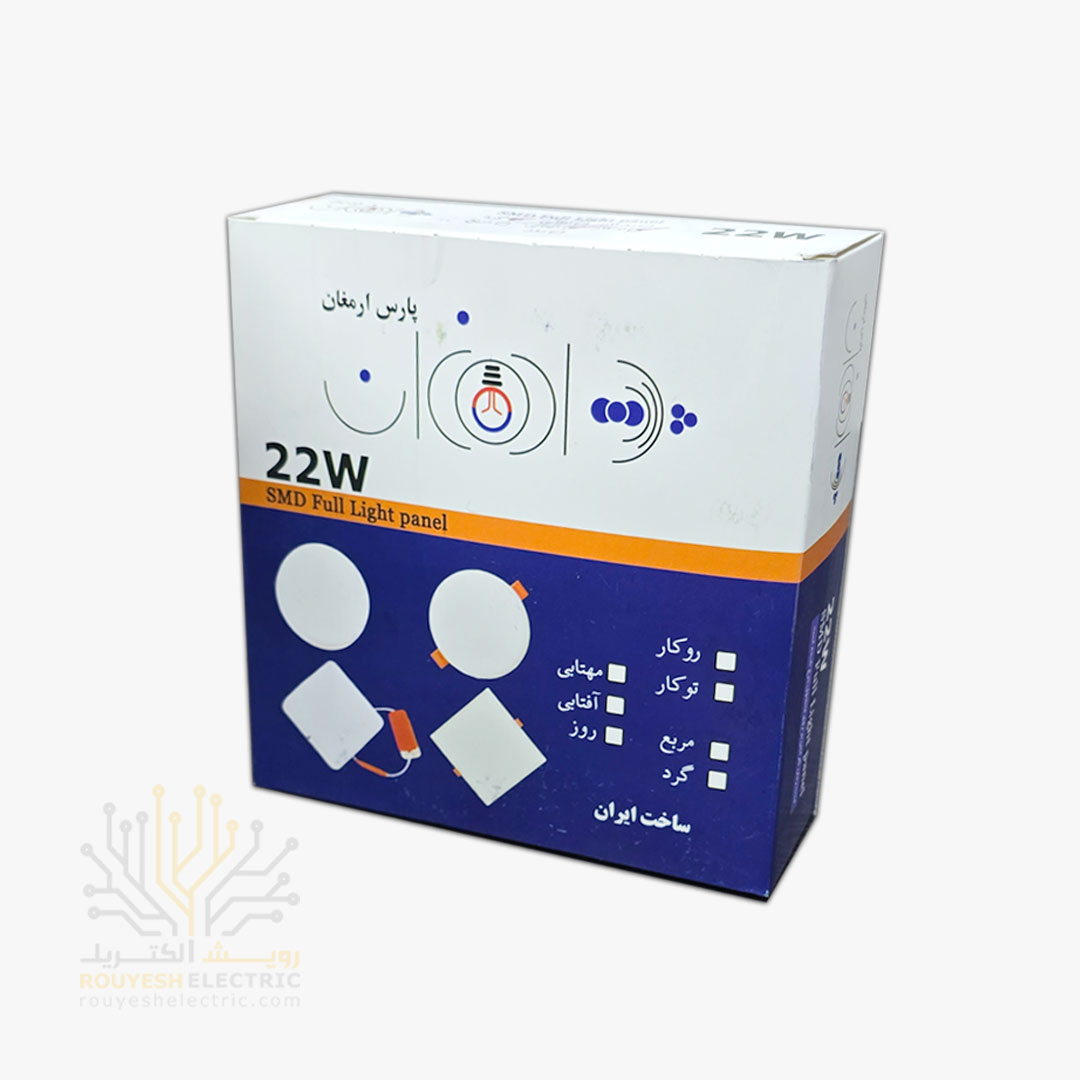 پنل سقفی توکار 22 وات برند پارس ارمغان مدل فول لایت فنر متغیر دایره استاندارد رنگ مهتابی