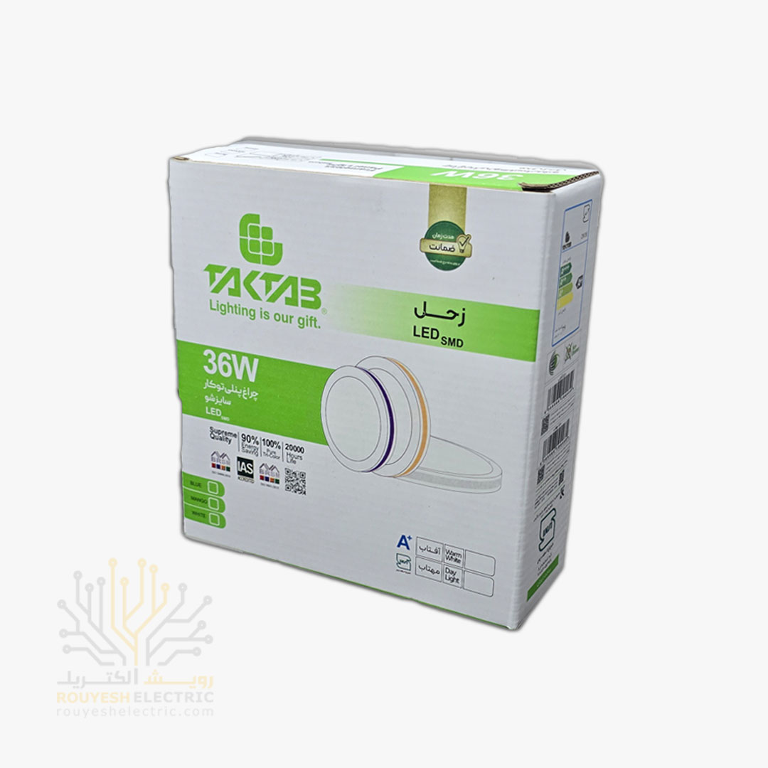 پنل سقفی توکار 36 وات برند تک تاب مدل زحل فنر متغیر دایره استاندارد آفتابی