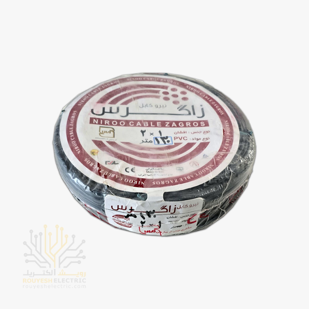 کابل برق نمره 2x1 برند نیرو کابل زاگرس استاندارد حلقه 100 متری