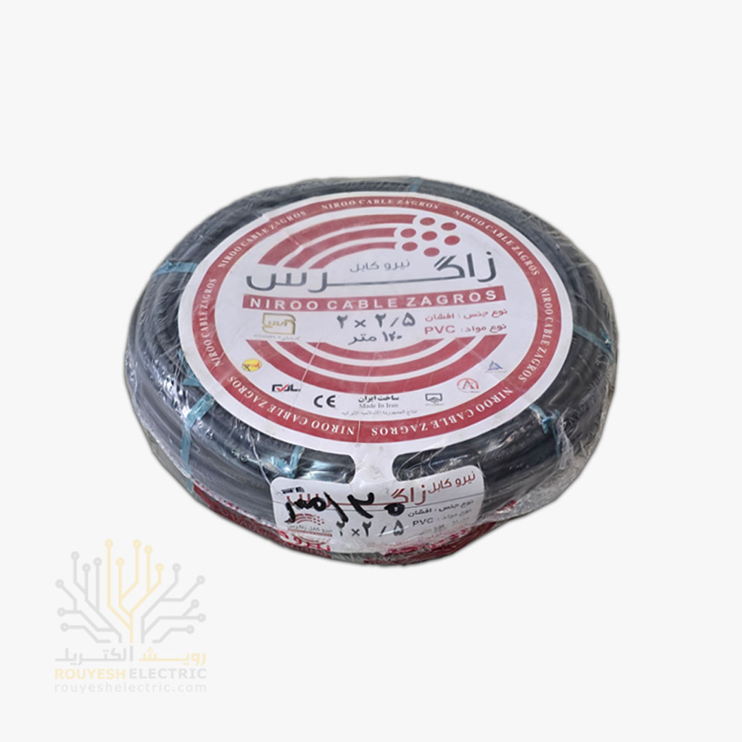 کابل برق نمره 2x2/5 برند نیرو کابل زاگرس استاندارد حلقه 120 متری