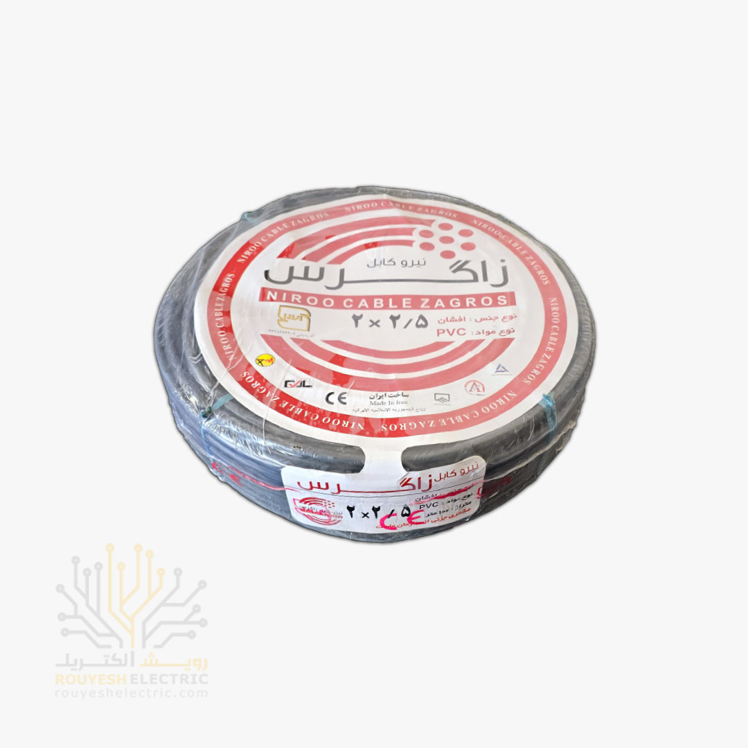 کابل برق نمره 2x2/5 برند نیرو کابل زاگرس استاندارد حلقه 100 متری