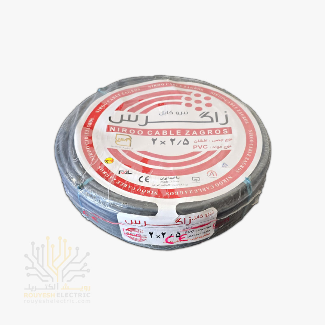 کابل برق نمره 2x2/5 برند نیرو کابل زاگرس استاندارد حلقه 95 متری