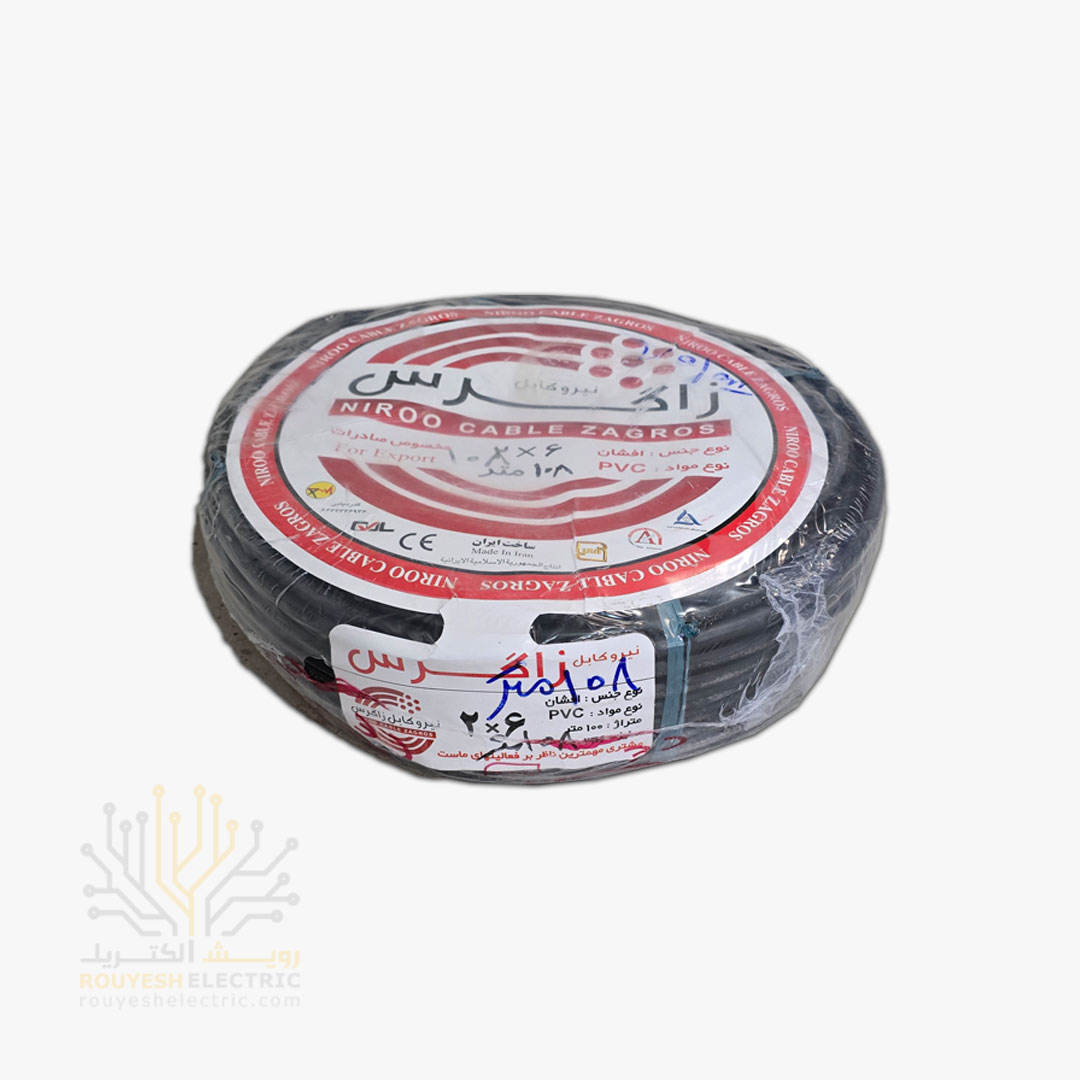 کابل برق نمره 2x6 برند نیرو کابل زاگرس استاندارد حلقه 108 متری