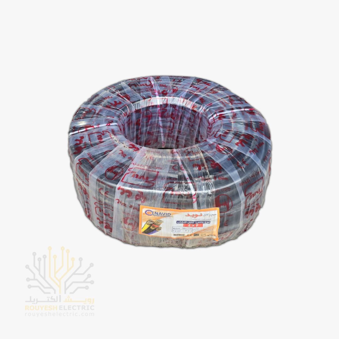 کابل برق نمره 4x6 برند نوید استاندارد حلقه 100 متری