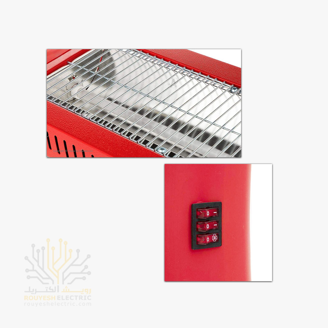 بخاری برقی استاندارد برند ماد الکتریک مدل رویال 4 شعله 2000 وات فن دار بدنه قرمز