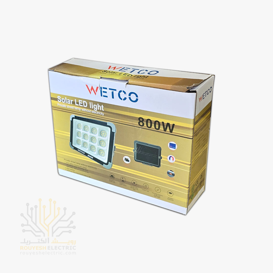 چراغ اضطراری پروژکتوری 156 SMD برند وتکو  پنج حالته 800 وات دارای پنل خورشیدی