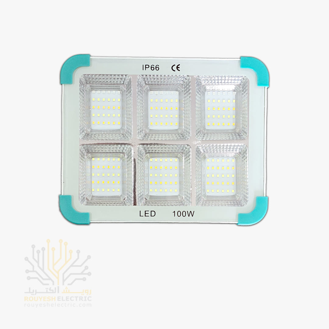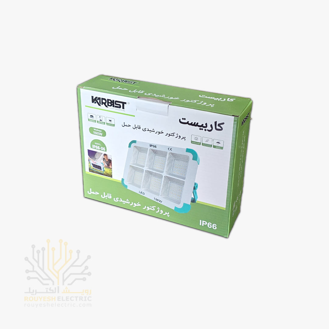 چراغ اضطراری پروژکتوری 180 SMD برند کاربیست 6 پنجره 100 وات 5 حالته دارای پنل خورشیدی مگنت دار
