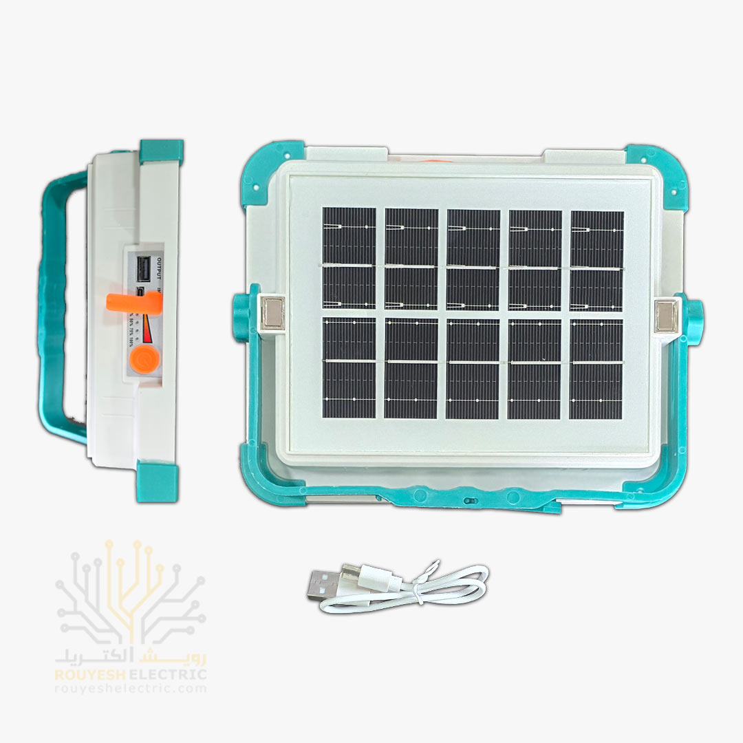 چراغ اضطراری پروژکتوری برند وای اس اچ دارای پنل خورشیدی با کابل 4/10 متری و ریموت کنترل دار