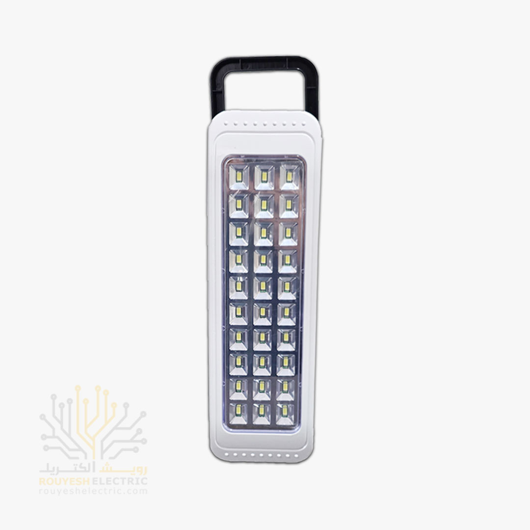 این چراغ اضطراری یک منبع نور قابل‌حمل و شارژی است که در مواقع قطع برق یا در فضاهای بدون دسترسی به برق شهری استفاده می‌شود. با داشتن ۳۰ عدد لامپ SMD، روشنایی مناسبی برای کمپینگ، کوهنوردی، سفر، طبیعت‌گردی و استفاده خانگی فراهم می‌کند. طراحی سبک و قابل‌حمل آن باعث شده یکی از گزینه‌های محبوب در بین چراغ‌های اضطراری باشد.