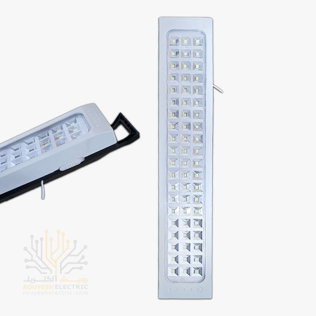 این چراغ اضطراری یک منبع نور قابل‌حمل و شارژی است که با بهره‌گیری از ۶۰ لامپ SMD کم‌مصرف، روشنایی مناسبی برای شرایط اضطراری، قطع برق، کمپینگ، سفر و استفاده در فضاهای بدون برق فراهم می‌کند. طراحی مقاوم و دسته‌دار آن، حمل و نصب را بسیار آسان کرده و برای استفاده در خانه، کارگاه یا فضای باز بسیار کاربردی است.