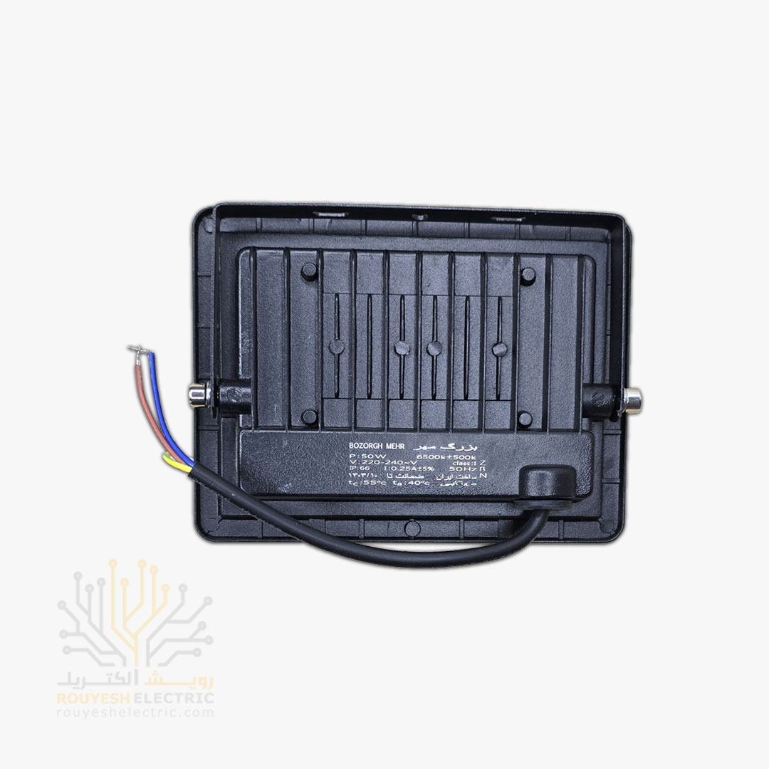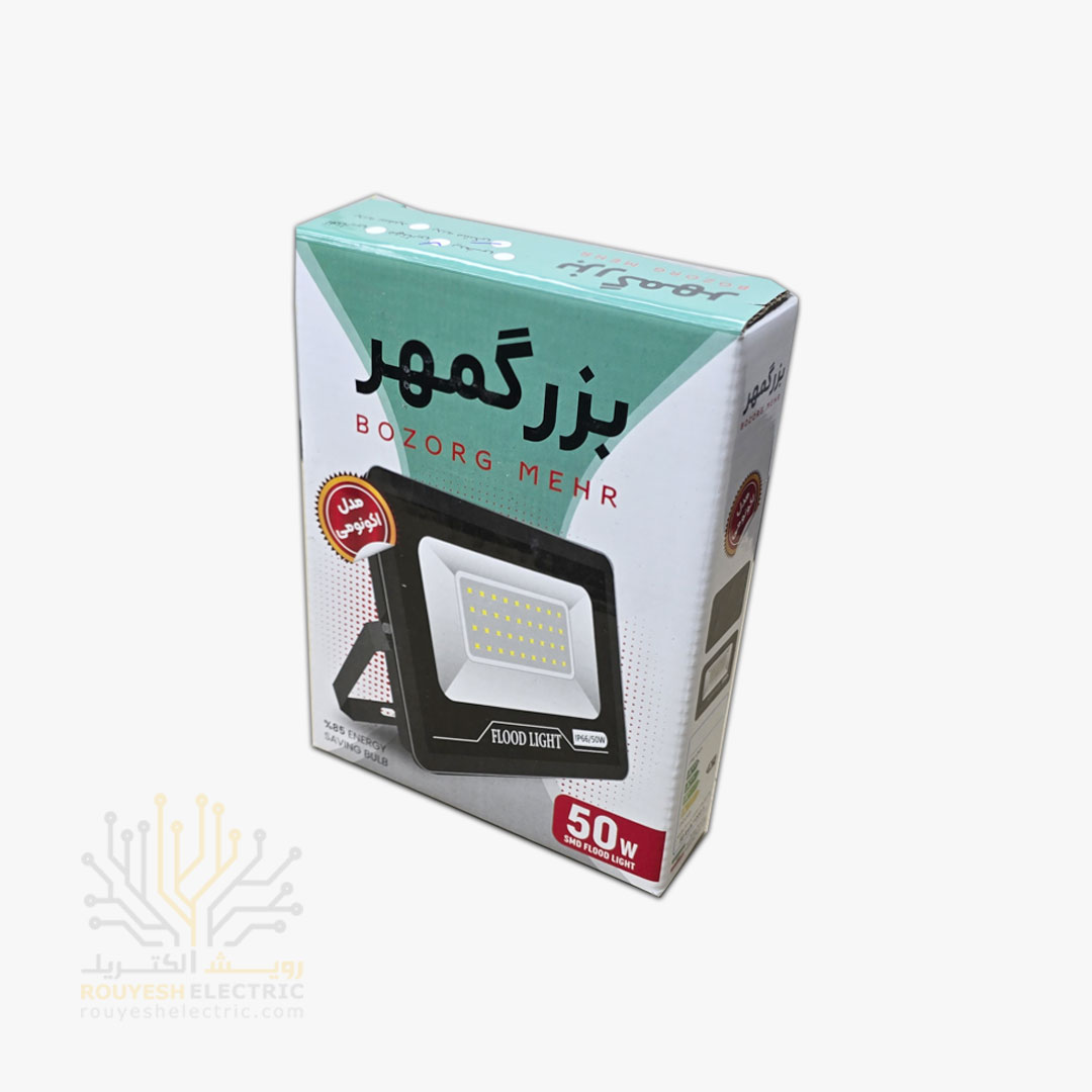 پروژکتور 50 وات SMD برند بزرگمهر مدل اکونومی بدون درایور بدنه مشکی مهتابی