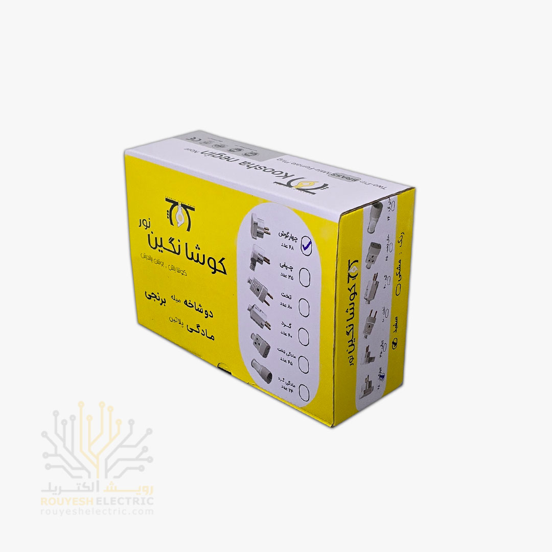 دوشاخه برق چهارگوش برند کوشا نگین میله برنجی رنگ سفید
