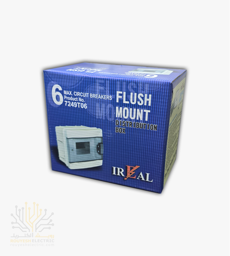 جعبه فیوز ۶ تایی توکار ایرآل یک محفظهٔ محافظتی برای نصب و نگهداری فیوزهای مینیاتوری در سیستم برق ساختمان است. این جعبه به‌صورت توکار نصب می‌شود، یعنی داخل دیوار قرار می‌گیرد و نمایی مرتب و ایمن به سیستم برق‌رسانی می‌دهد. کاربرد اصلی آن در منازل، ادارات و ساختمان‌های تجاری برای توزیع برق، محافظت از مدارها و دسترسی آسان به فیوزها است.