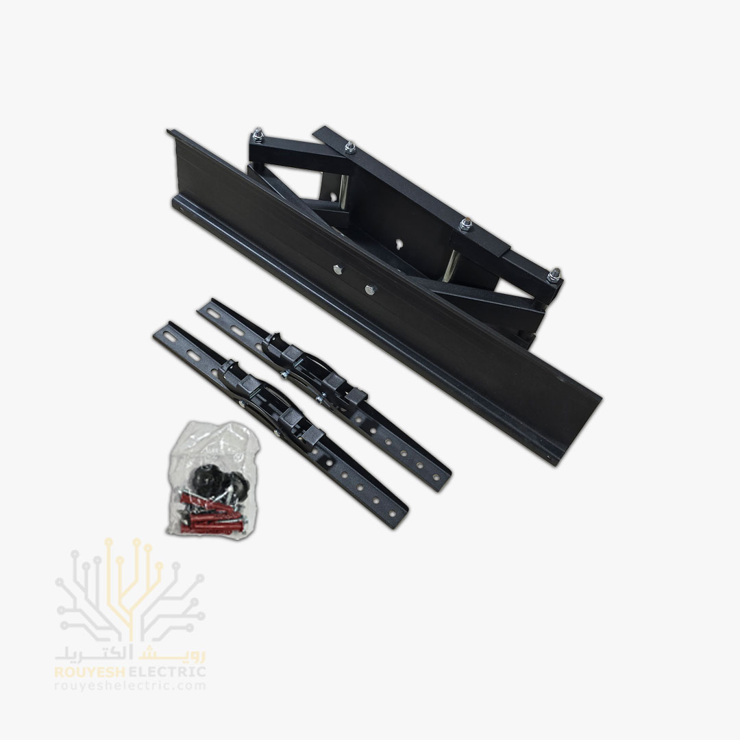 - بازوهای دوگانه (دو بازو): ساخته شده از فلز مقاوم و با قابلیت تنظیم جهت و حرکت، وزن تلویزیون را تا 60 کیلوگرم تحمل میکنند.