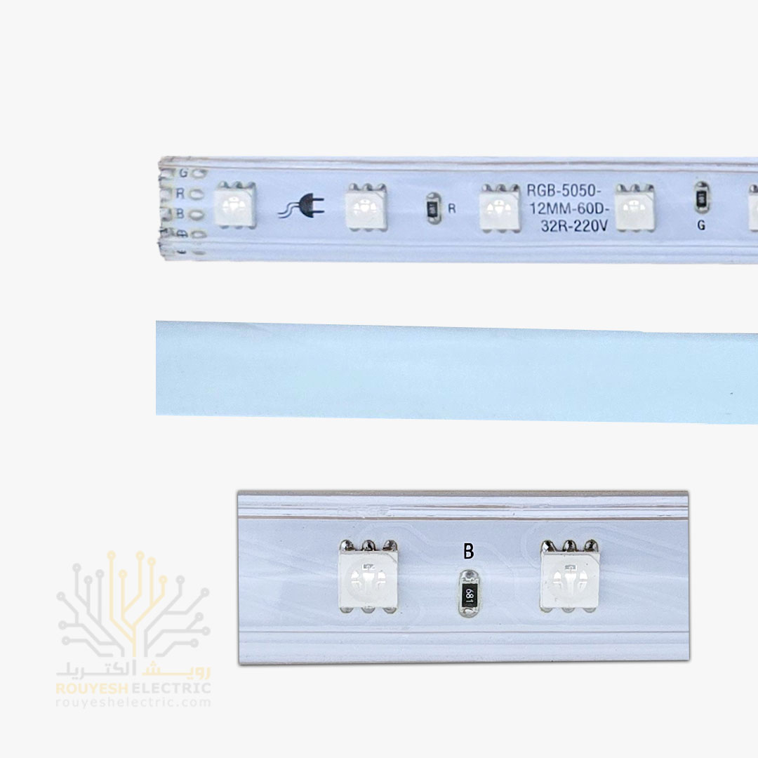 این ریسه با ولتاژ مستقیم 220 ولت کار می‌کند و نیازی به ترانس یا آداپتور ندارد. چیپ‌های 5050 RGB روی بورد داخلی قرار گرفته‌اند و با استفاده از کنترلر مخصوص، می‌توان رنگ‌ها و افکت‌های نوری مختلفی را تنظیم کرد. قابلیت برش در هر ۱۰۰ سانتی‌متر، امکان تنظیم طول دلخواه را فراهم می‌کند.