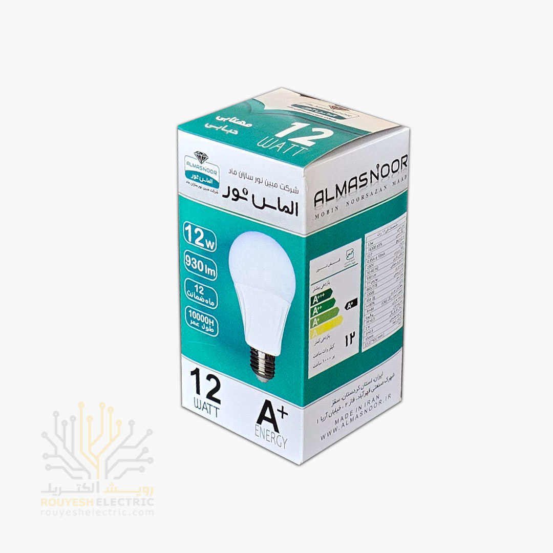 لامپ ال ای دی 12 وات حبابی برند الماس نور مهتابی