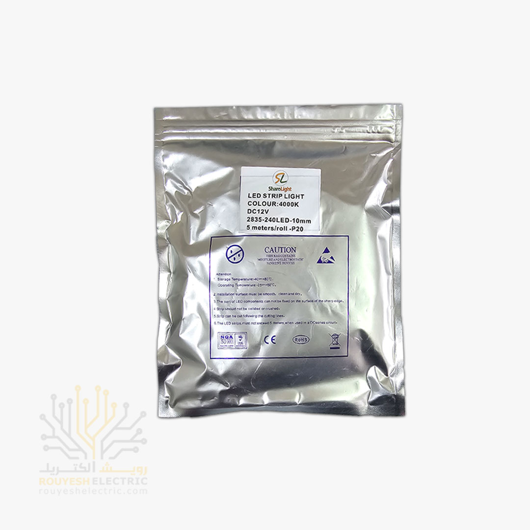 ریسه نواری لاینر 220 ولت برند شارو لایت تراکم 240 برش 10 سانت 1 میل نچرال مخصوص فضای مرطوب حلقه 50 متر