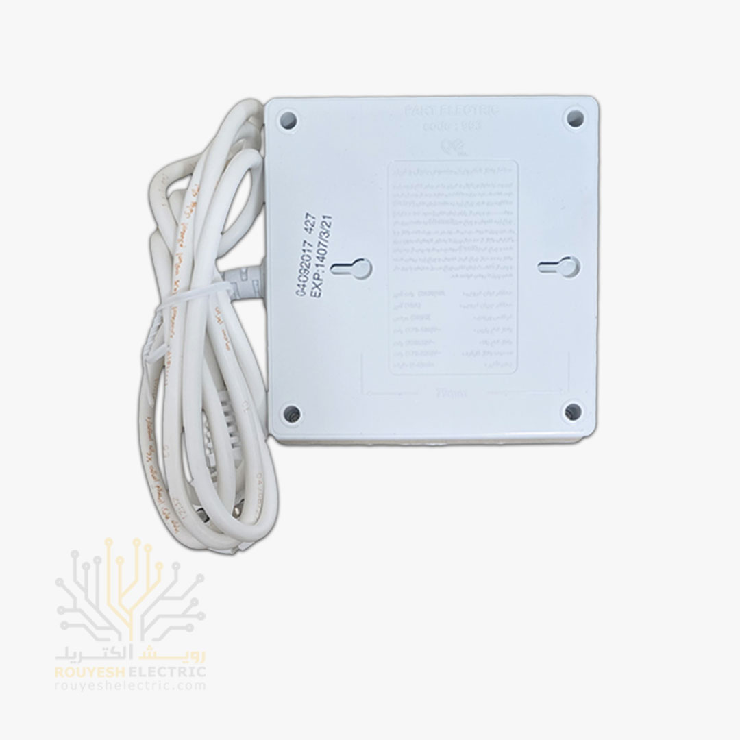 محافظ برق یخچال سیار دو خانه برند پارت الکتریک کد 903 ارتدار مغزی سرامیک 10 آمپر بدنه سفید آنالوگ 1/8 متری