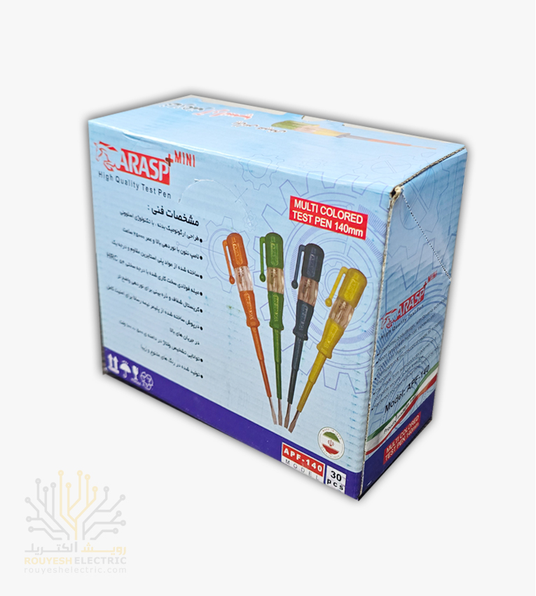 فازمتر کوتاه ایرانی برند آراسپ مدل پلاس رنگی، یک ابزار تست و شناسایی فاز و نول برق است که برای استفاده‌های سریع و امن در تعمیرات و نصب‌های برقی طراحی شده است. این فازمتر با ساختار کوچک، مقاوم و قابلیت حمل آسان، در کارهای برق‌کاران، تکنسین‌های نصب و نگهداری سیستم‌های برقی کاربرد فراوان دارد. هدف اصلی آن، شناسایی وجود برق در مدارها، پریزها یا سیم‌های برق است و به کاربران امکان می‌دهد از ایمنی در کار اطمینان حاصل کنند.
