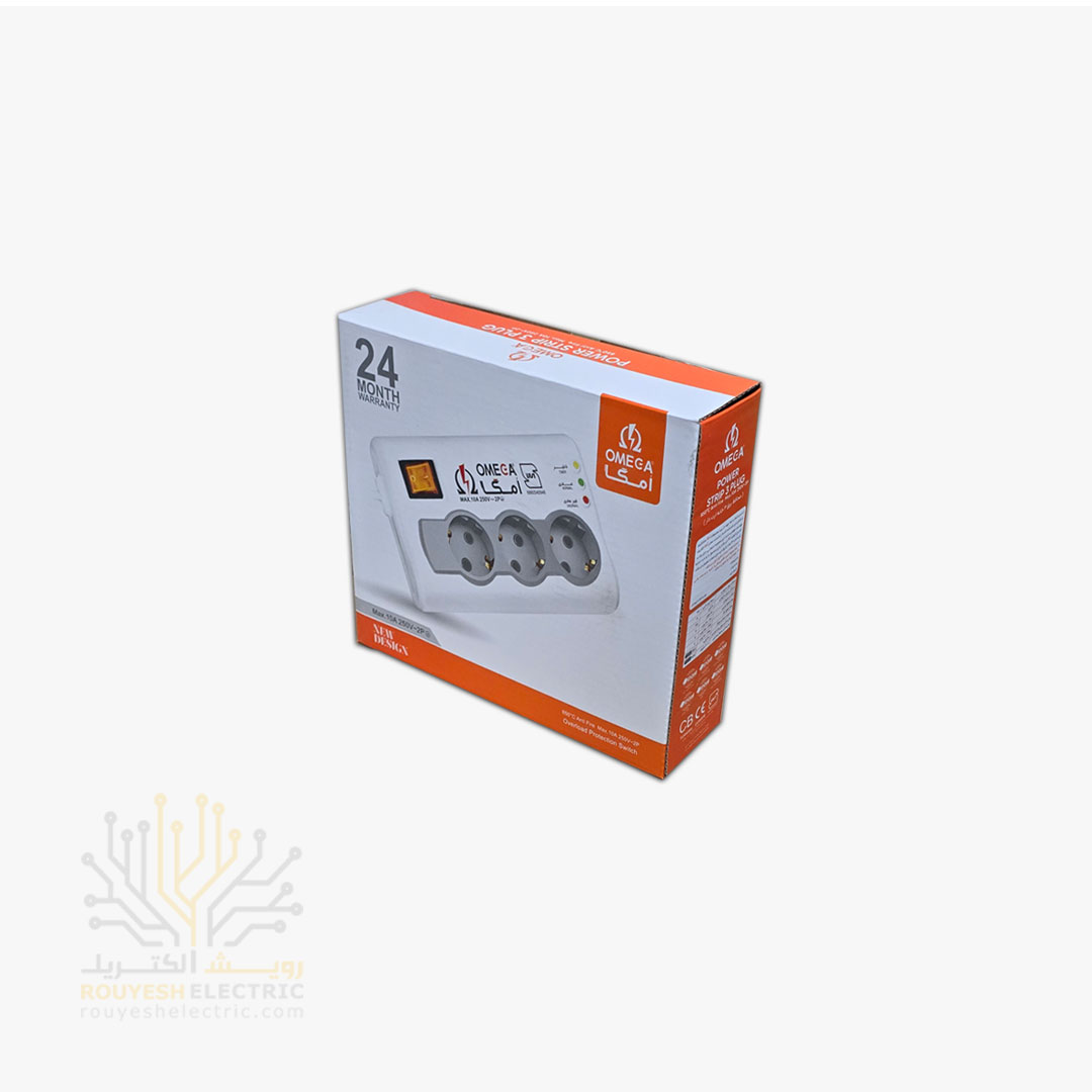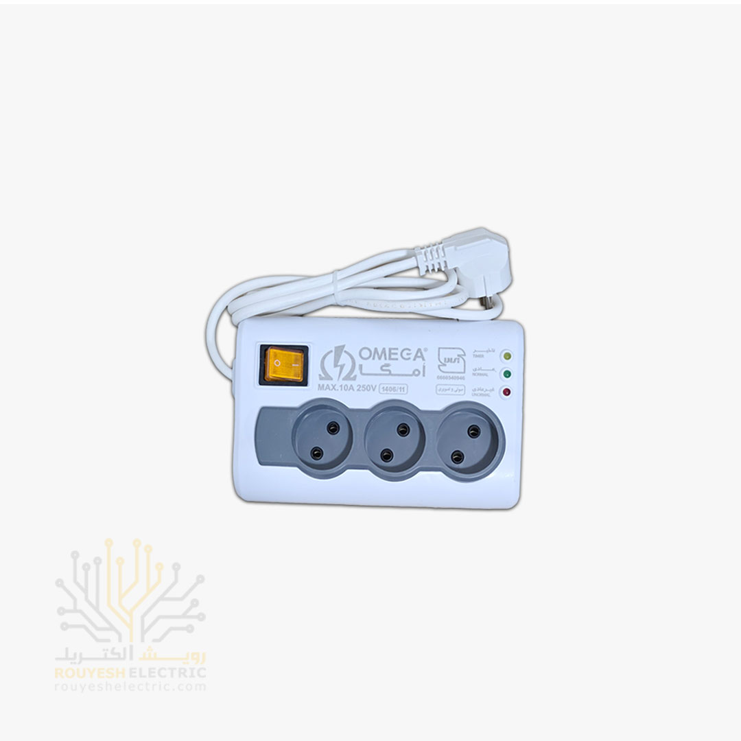 محافظ برق کامپیوتر سیار سه خانه برند امگا مدل p3000 استاندارد ارت دار کلید دار 1/5 متری
