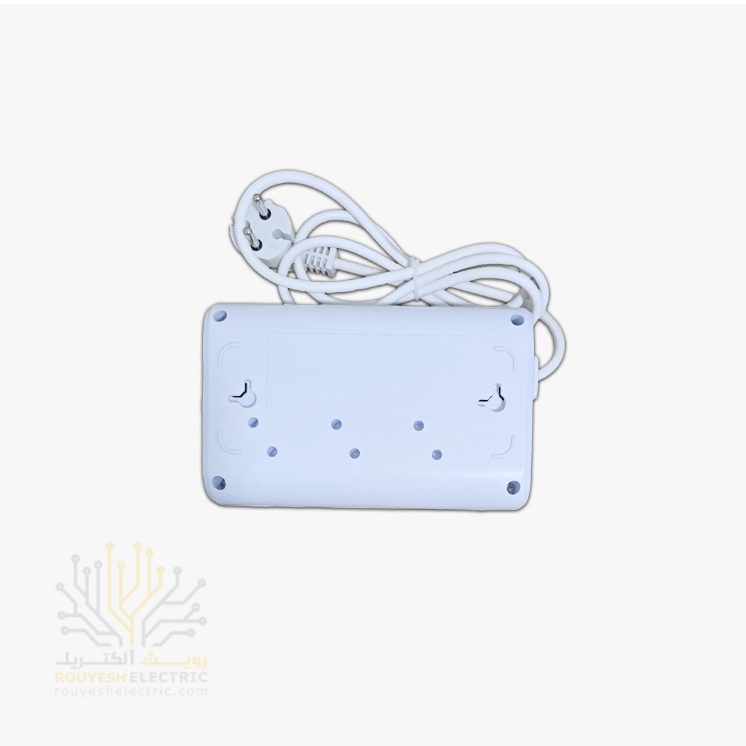 محافظ برق کامپیوتر سیار شش خانه برند فروزش مدل FR600 بدون ارت کلید دار بدنه سفید آنالوگ 2/8 متری
