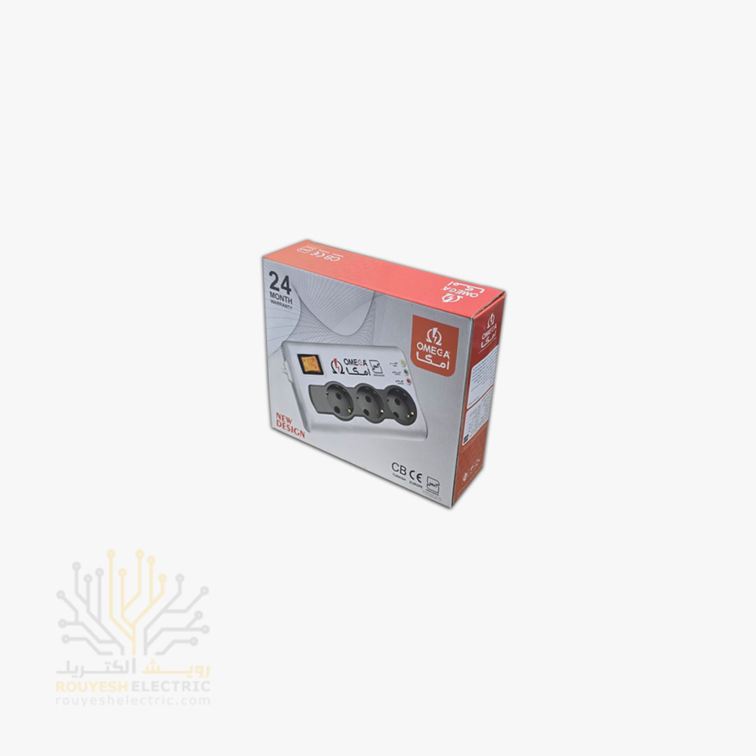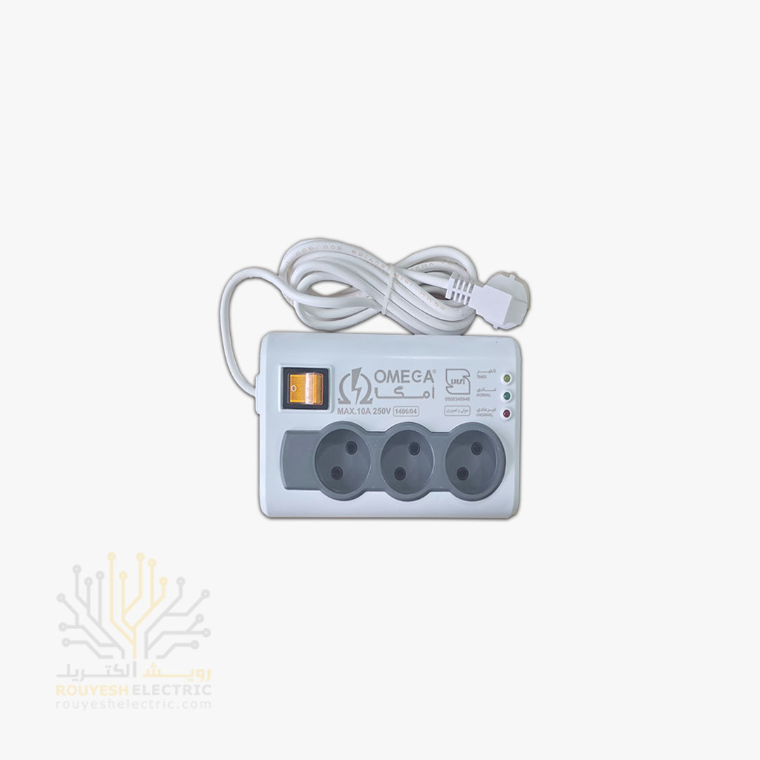 محافظ برق کامپیوتر سیار سه خانه برند امگا مدل p3000 استاندارد بدون ارت کلید دار 3 متری